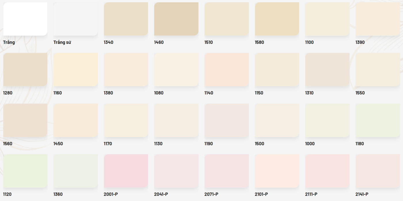 Màu sắc trên bản phối màu chỉ mang tính chất tham khảo, vui lòng đối chiếu lại trên cây màu, bảng màu